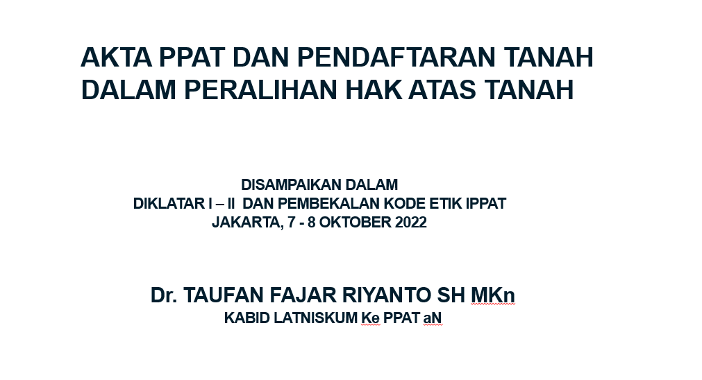 PEMBUATAN AKTA TANAH (JUAL BELI, TUKAR MENUKAR, INBRENG, PEMBERIAN HP, HGB ATAS TANAH HM) – Dr H Wira Franciska, SH.,MH
